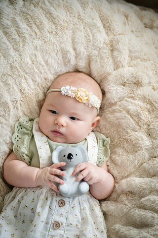 The koala is part of our Tikiri Australian Animal collection. There is a bell inside the koala which makes a sweet sound to delight your child as they are playing with it.
