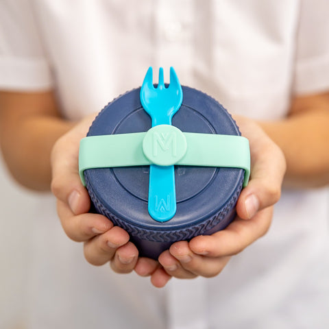 Simply slip the band over your MontiiCo Food Jar and it is good to go. You can either fit your own fork or spoon in the band or use the MontiiCo Cutlery range which is available to purchase separately.